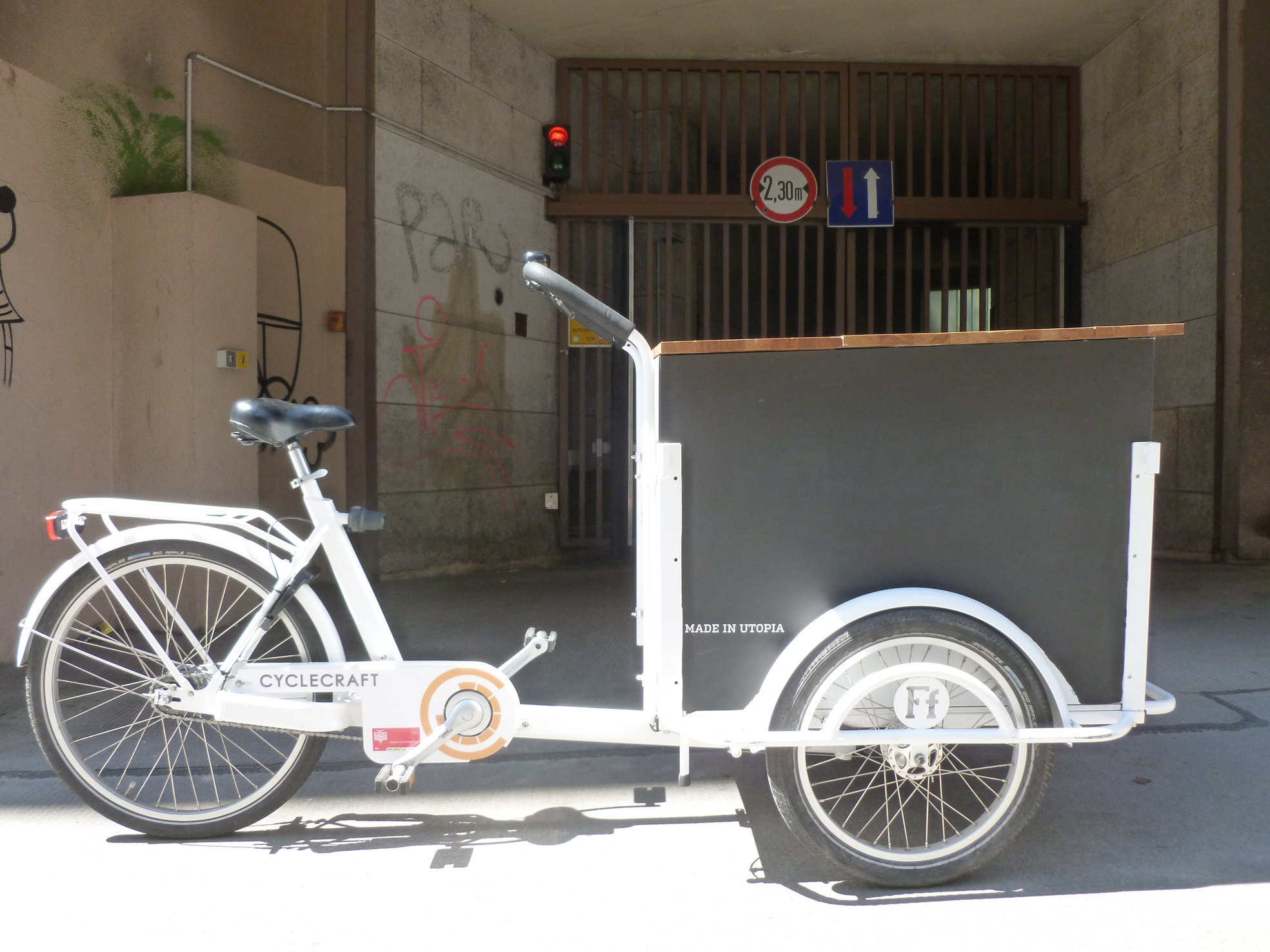 Ein Lastenfahrrad für Alle! Das Lastenfahrrad (Marke utopia) wurde als fahrende Bar mit Tischplatte und Tafellack umgebaut und bei vielen Vereinsveranstaltungen eingesetzt.